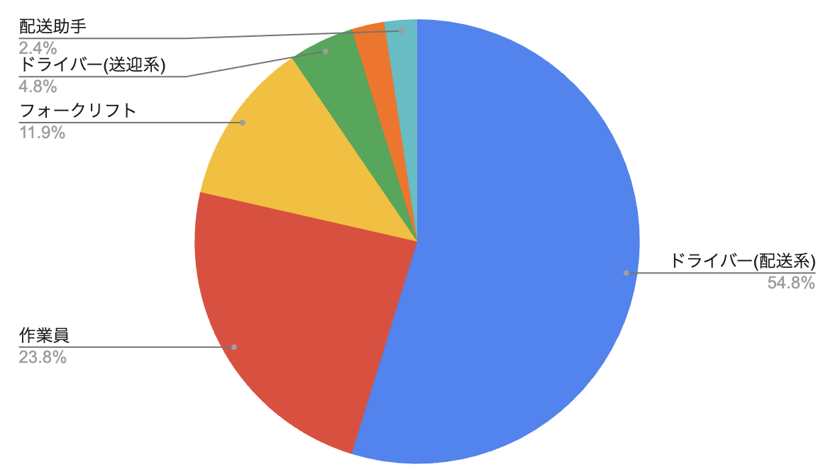 一方で、作業員やフォークリフトといった物流現場系職種も約3割を占めており、 「ドライバー職」に限定せず、輸送・倉庫・構内作業を含めた仕事を選択肢として検討している層が一定数存在していることが分かります。