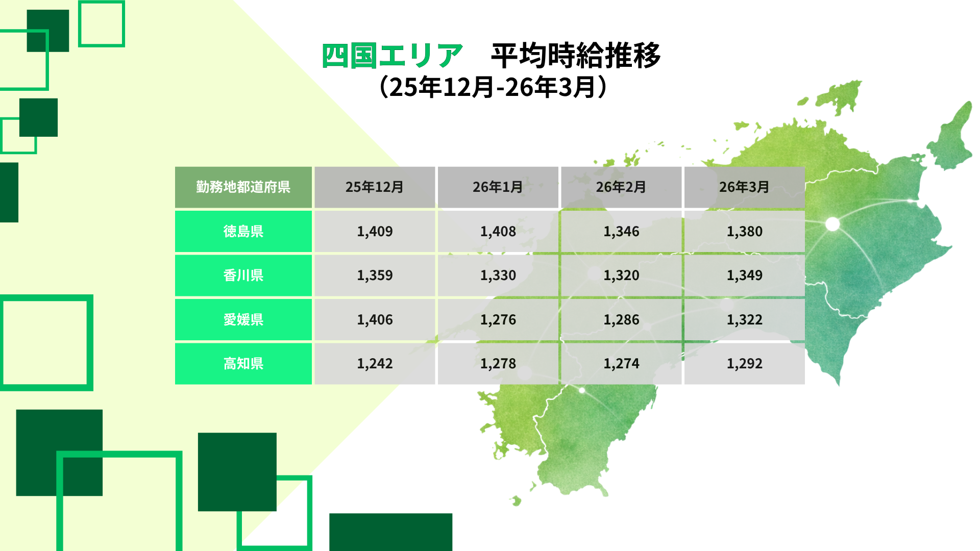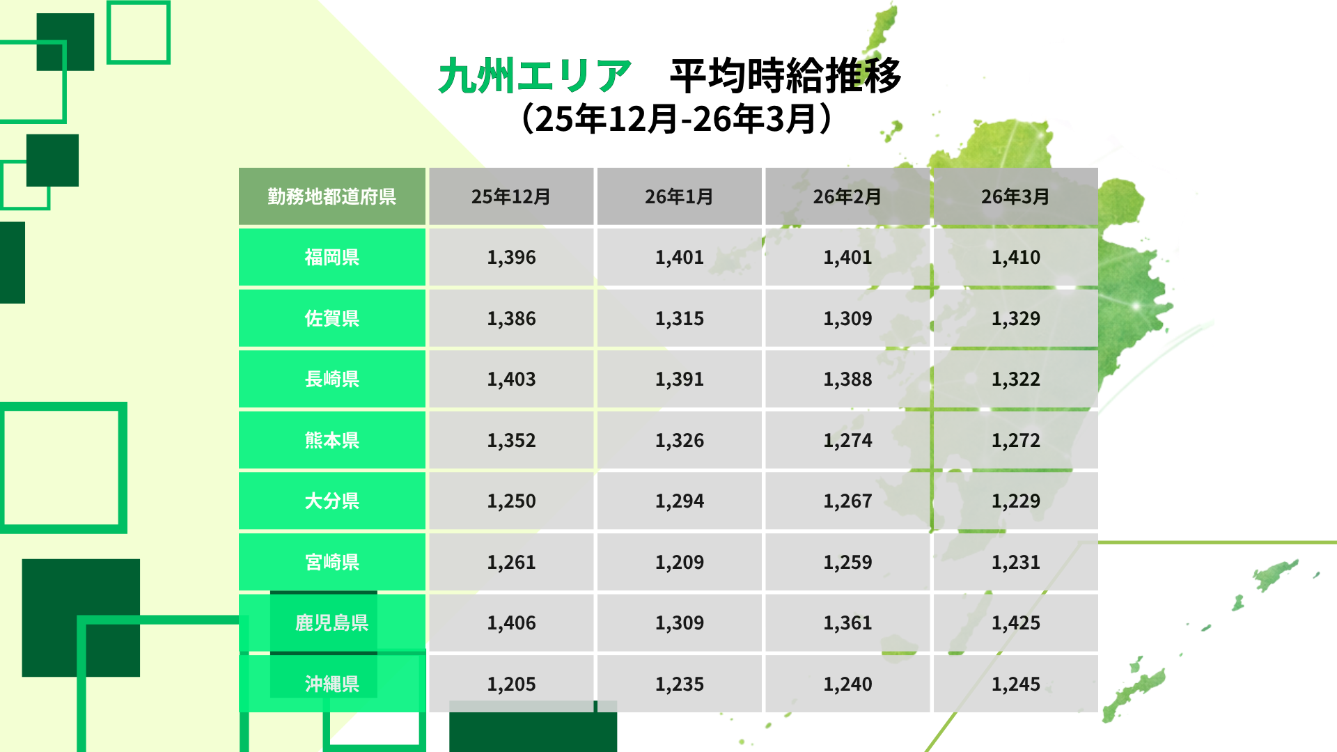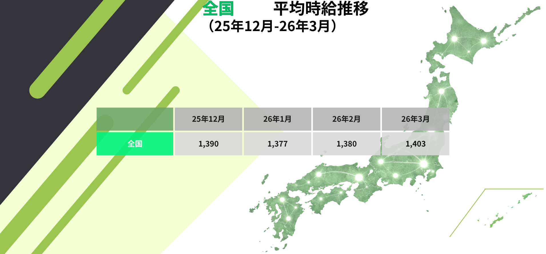 2026年3月時点の平均時給は1,403円と、大きな変動は見られません。