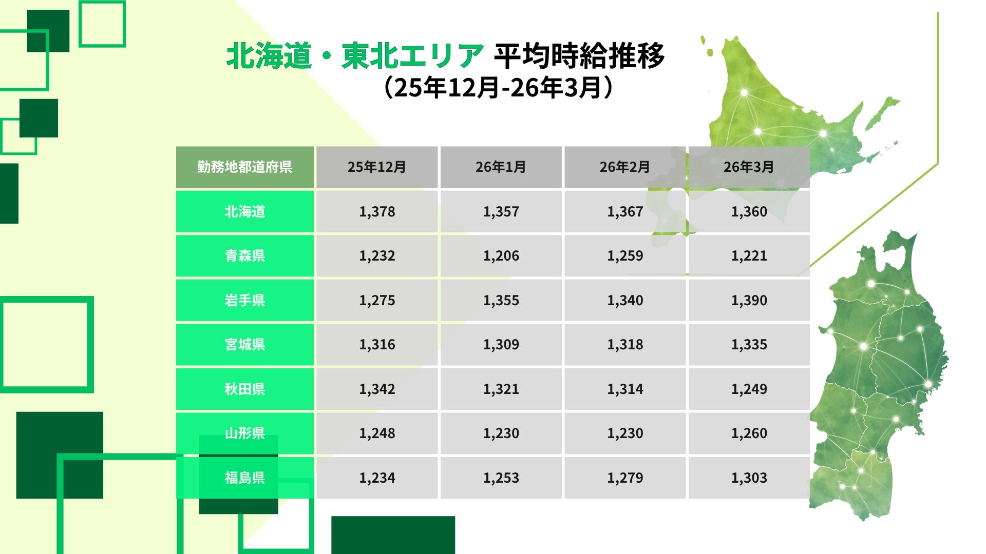 北海道・東北エリアは、求人母数が少なく、県ごとの振れ幅が大きい特徴があります。