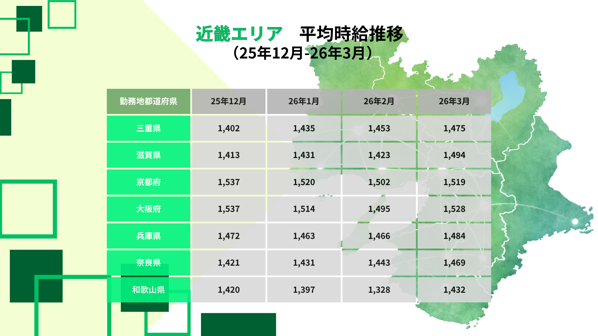現在の採用市場は、「平均時給の上下」よりも地域ごとの需給バランスが応募結果に影響しやすい局面に入っていると言えるでしょう。