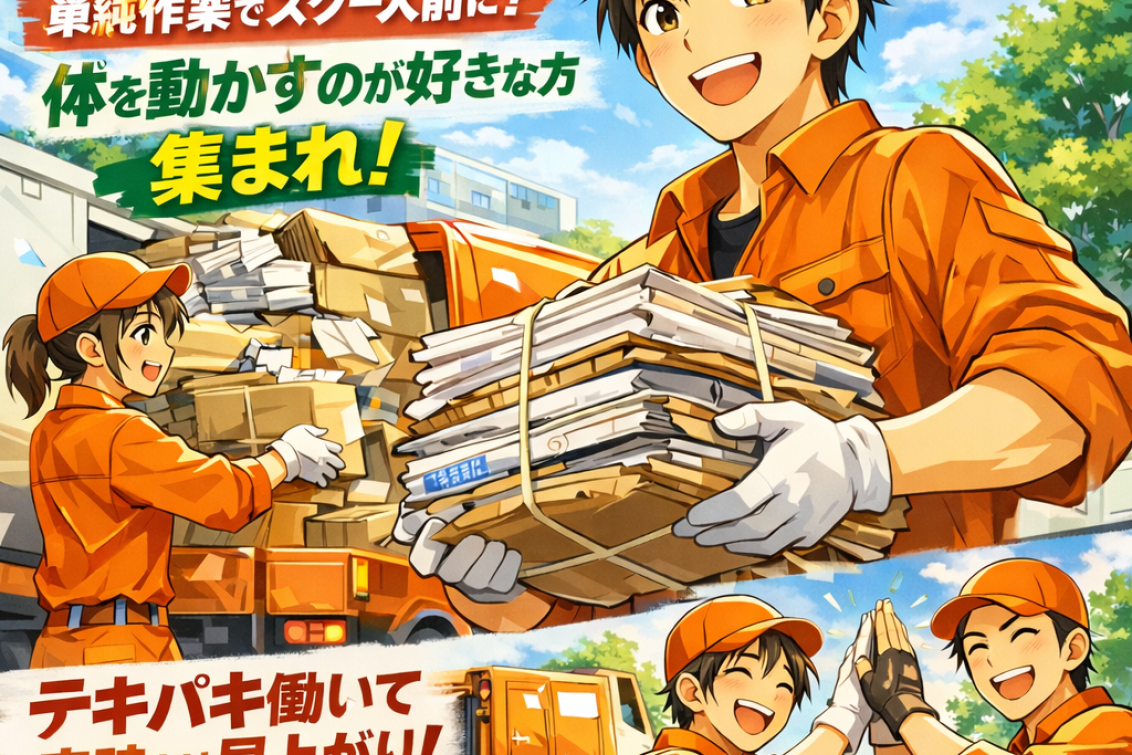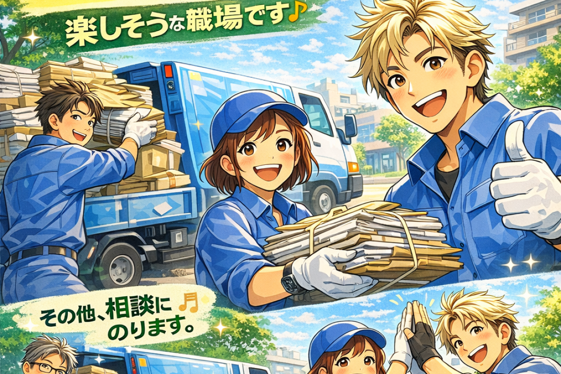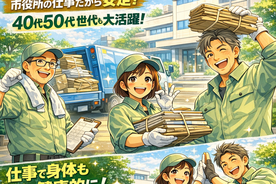 市から委託されたルートを回り、資源ゴミの回収業務を行うお仕事です。