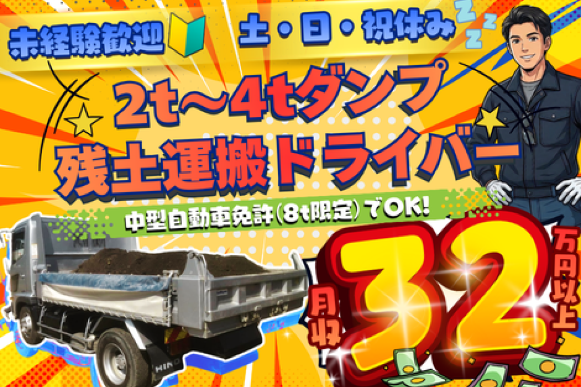 2t~4tダンプでの残土運搬ドライバー