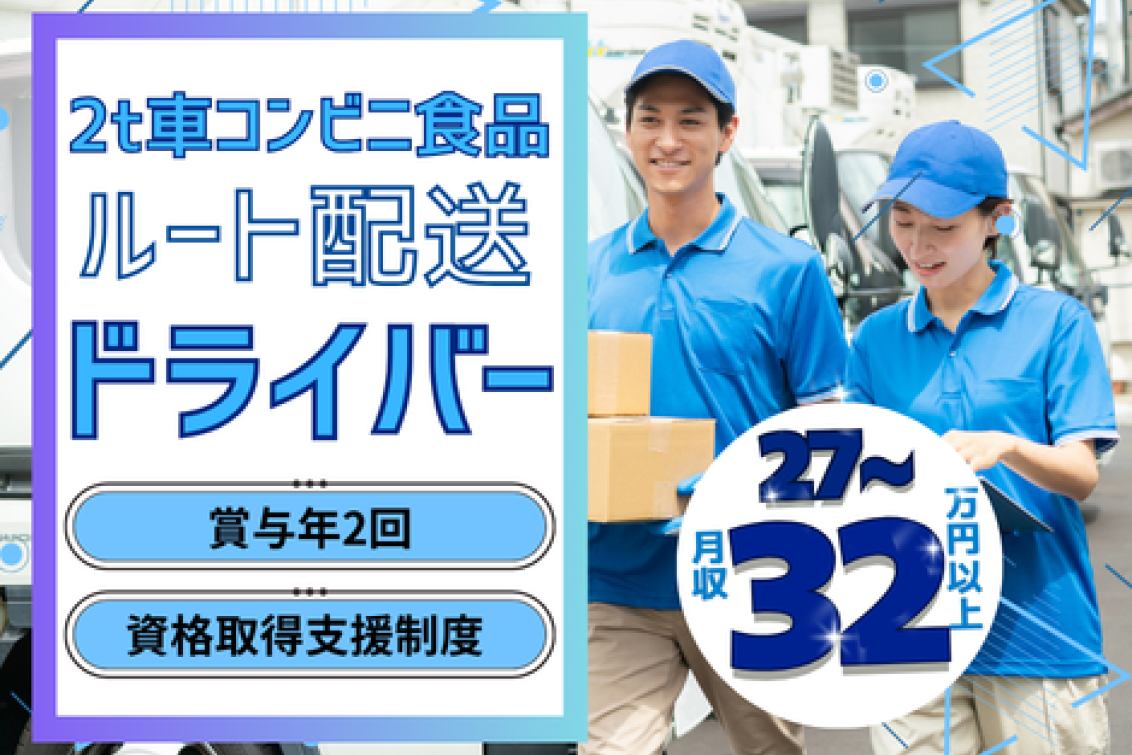 未経験から月収32万円可|近距離ルート配送|日勤・夜勤選べる|残業代1分単位支給|コンビニ配送ドライバー